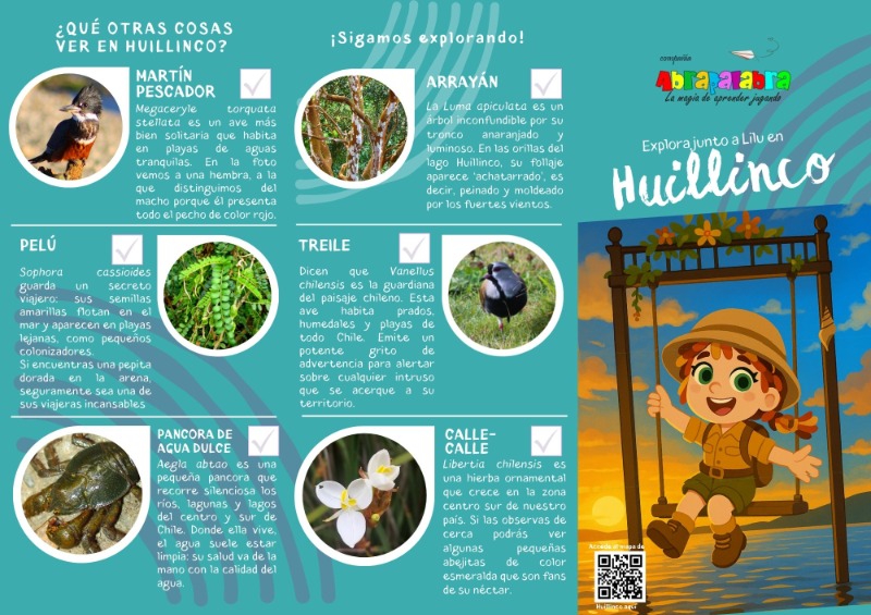 Cada tríptico está dedicado a un lugar específico y combina ilustración, mapas, información sobre flora, fauna y tradiciones locales, junto a actividades simples que fomentan la observación, el respeto por la naturaleza y la conexión con el territorio. Su formato práctico y visual los convierte en una herramienta ideal para el aprendizaje en terreno, el turismo consciente y la educación no formal.